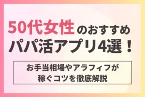 40代アラフォー女性におすすめのパパ活アプリや、50代アラフィフ女性におすすめのパパ活アプリは、下記の記事を参考にしてください。